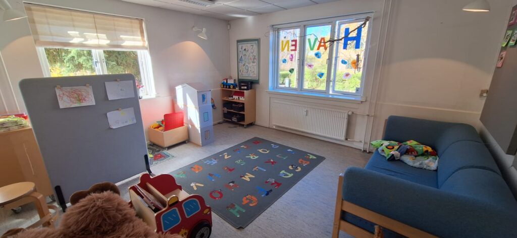 Rådvadsvej 1-rühmalise lasteaia (mis kuulub Kantorparkeni lasteaia alluvusse ja asub umbes 500 m kaugusel) rühmaruum ja hubane hoov.