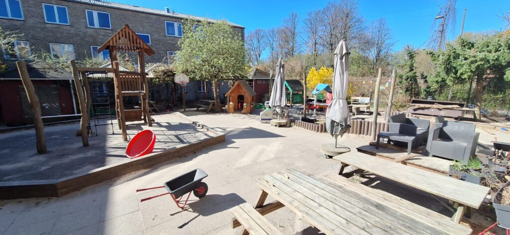 Kantorparkeni lasteaed on väike 2-rühmaline, kus toimetab igapäevaselt kuni 40 last. Hoone ehitati lasteaiaks 60 aastat tagasi ja sellest ajast pole palju muutunud. Lasteaia hoov on aga iga lapse unistuste paik meenutades kombot Pipi Segasummasuvilast ja maal elava vanaema hoovist. Seal leidus nii mudakööke, lõkkeplats, mis on kasutuses aastaringselt, laste tehtud maalid aedadel, puuonn, ronilad, kiiged, jalkaplats, puuotsas olev kiik, takistusrajad, ehitusklotsid jne piirtult võimalusi leida sobivaim tegevus. Terve kooslus tänu selle lasteia väikesele laste arvule mõjus koduselt, justkui oleks sattunud ühe suurpere toimetuste keskele. Vähem rõhku välisele ja suur rõhk sotsiaalsetele suhetele, lapsekesksusele. Taani lasteaedade põhimõtteks on: Laps õpib kõige paremini läbi mängu nii lasteaias kui ka hiljem koolis. Lastele antakse vabadus katsetada, proovida, avastada, arvamust avaldada. Vähem reegleid-rohkem vabadust-rõõmsamad lapsed.