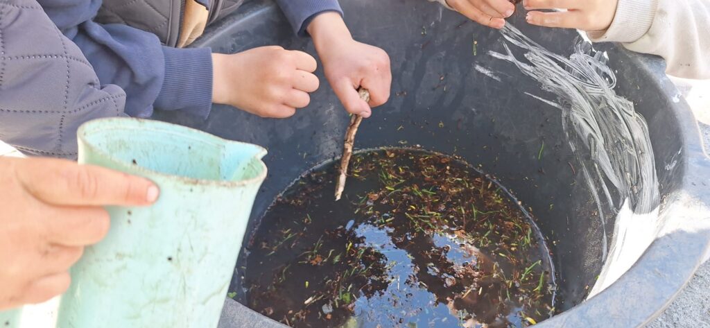 Läbi toru vee valamise seadeldise ehitamine koos lastega ja kasutamine.