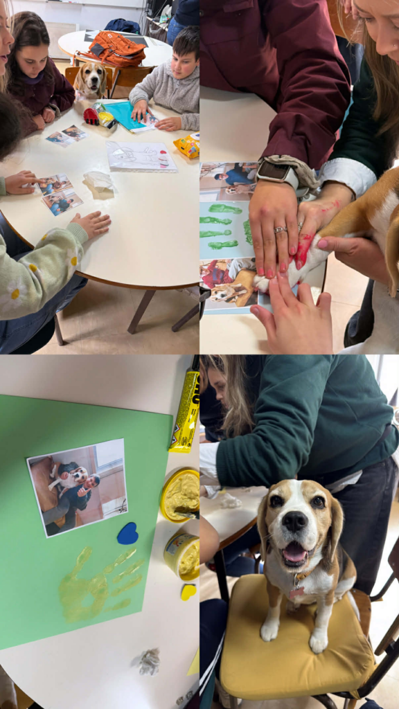 Täna hommikul läksimegi koolimajja ja meie päev algas koerateraapiaga. Issver, kui lahe, aga natuke oli kutsust kahju ka. Koerateraapia on lastel kord nädalas. Teraapiat viis läbi psühholoog. Tal on magistrikraad psühholoogias ja kuna ta koeri armastab, siis otsustas ta koerateraapiat hiljem juurde õppida. Koeri on tal kaks. Mõlemad on hästi rahulikud ja leplikud koerad. Täna oli koera ümber inimesi palju ja kõik katsusid koera pidevalt. Tegelikult oli näha, et see väsitas koera päris korralikult ära ja mingil hetkel üritas ta kõigist juba eemale hoida. Psühholoog ise ütles ka, et üle kahe tunni päevas ta koeraga seda tööd ei tee, sest koer on peale seda väga väsinud. Seega täna oli tal üks tund siin koolis ja teine tund ühes teises koolis. Veel rääkis ta meile, et ta teeb nii grupitunde (nagu täna), kui ka individuaalseid tunde. Tunde teeb ta nii HEV laste, kui ka eakohase arenguga lastega. Mõnikord ka vanuritega. Individuaalseid tunde teeb ta lastega, kellel on näiteks depressioon, ärevushäired või muud vaimse tervise probleemid. Koerateraapia on oma olemuselt lihtne. Koera saab silitada, temaga mängida, teha koos koeraga harjutusi ja muud sellist. Ehk siis tegelikult on see lihtsalt aeg, kus saab nautida looma kohalolu. Täna meisterdasid lapsed plakati, millel olid kujutatud laste ja koera pildid, laste käejälg ja koera käpajälg. Samuti kinnistati lastele reegleid, kuidas koeraga käituda.