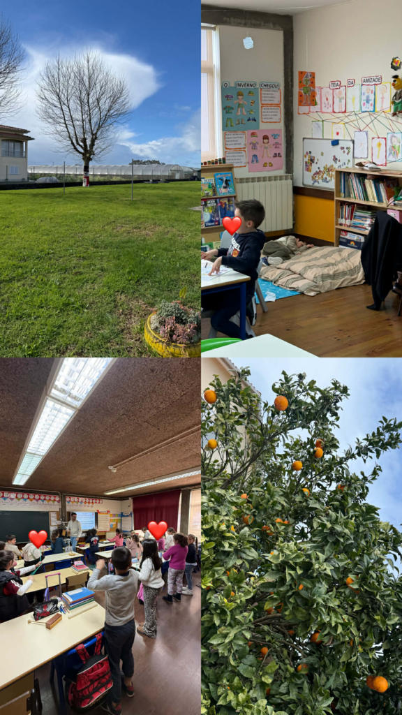 Täna hommikul kohtusime oma hostiga, kes töötab koolide ühenduses Agrupamento de Escolas António Correia de Oliveira. Portugalis tähendab “agrupamento de escolas”, et mitu lasteaeda ja kooli kuuluvad sama juhtimise alla. Selle süsteemi keskuseks on tavaliselt üks suurem kool – siin on selleks Escola Básica António Correia de Oliveira. Koolimajas, kus meie käisime oli nii algkooli osa (1.-4.klass), kui ka põhikooli osa (5.-9.klass). Koolisüsteem on sarnane Eestile. Esmalt minnakse lasteaeda (2-3 aastaselt), siis algkooli ja põhikooli. Peale põhikooli saavad lapsed minna nii gümnaasiumisse, kui ka kutsekooli. Suurim erinevus võrreldes Eestiga on see, et gümnaasiumisse minnes ei pea õpilased läbima katseid, vaid saavad oma õppesuuna ise valida ja neile võimaldatakse see, et nad kindlasti valitud suunda minna saaks.